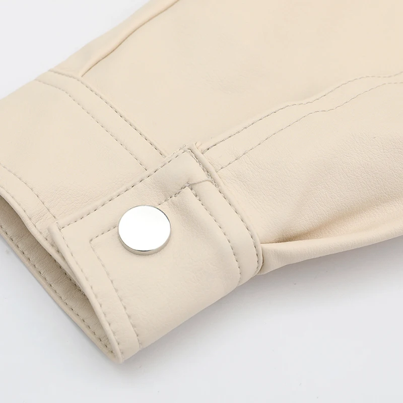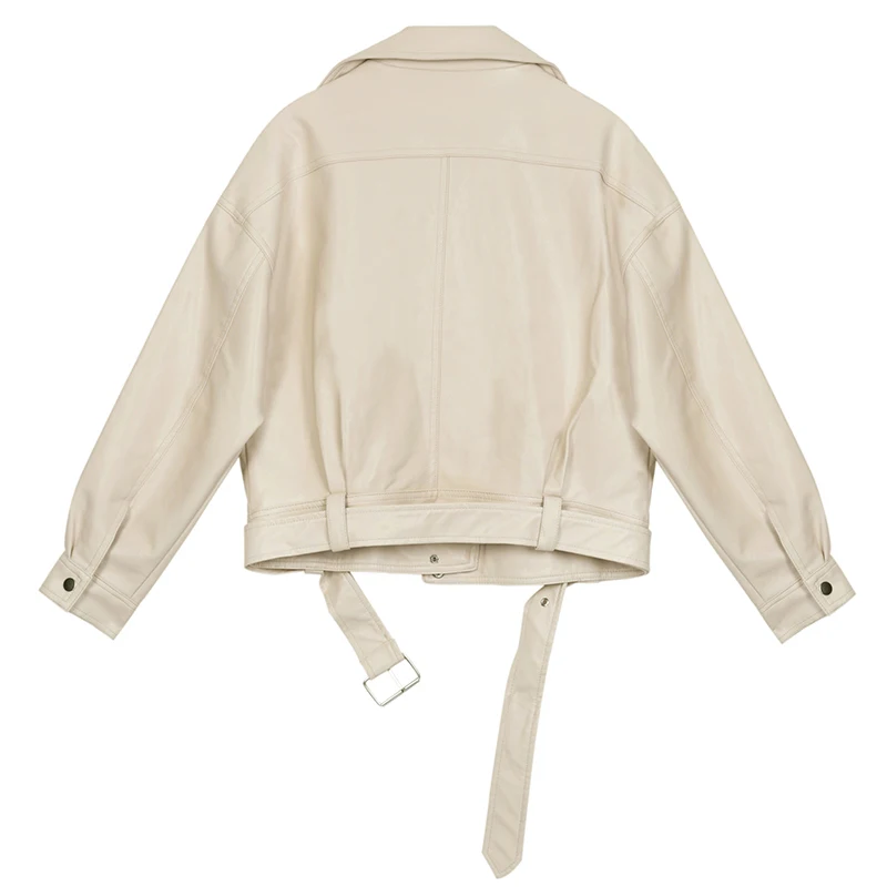 Trend [EAM] 2020 Neue Herbst Winter Revers Langarm Apricot Pu Leder Lose Große Größe Kurze Jacke Frauen M