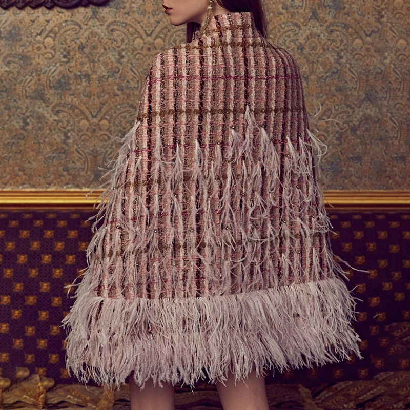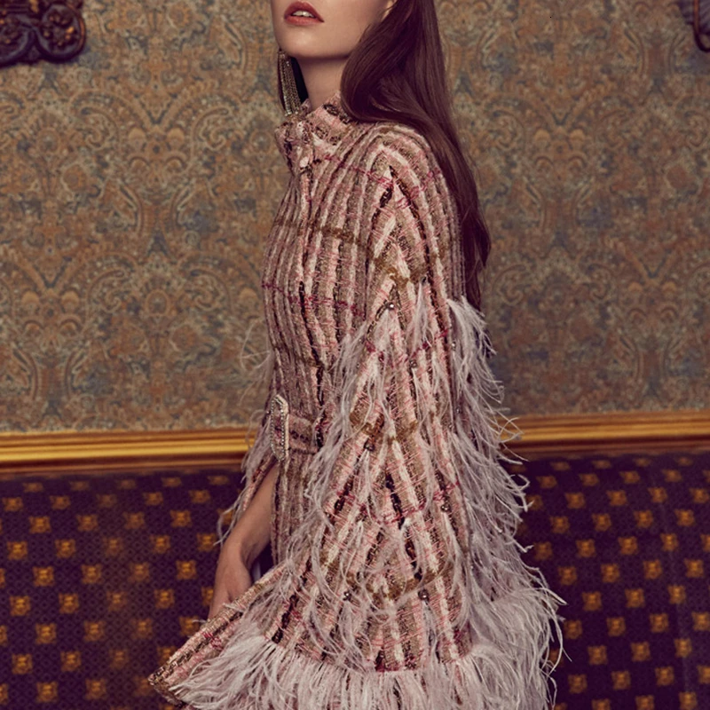 TWOTWINSTYLE Patchwork Feathers Diamond Coat For Women Turtleneck Cloak Sleeve High Waist With Sashes Female Coats 2019 Fashion :Click Here