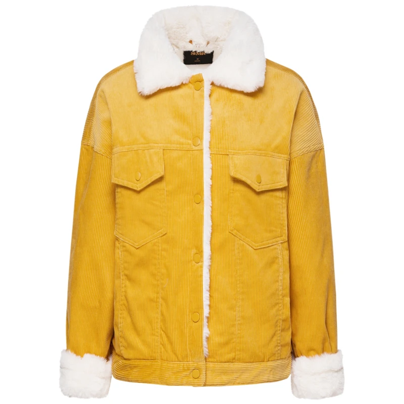 Best Product SEMIR Frauen Pile-Gefüttert Cord Jacke mit Brust Tasche und Schräg Tasche Frauen Kurze Sherpa-Gefüt