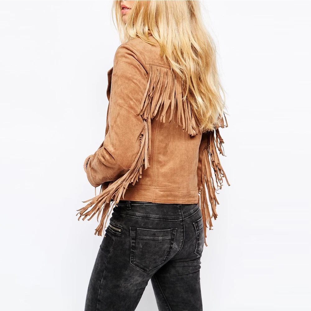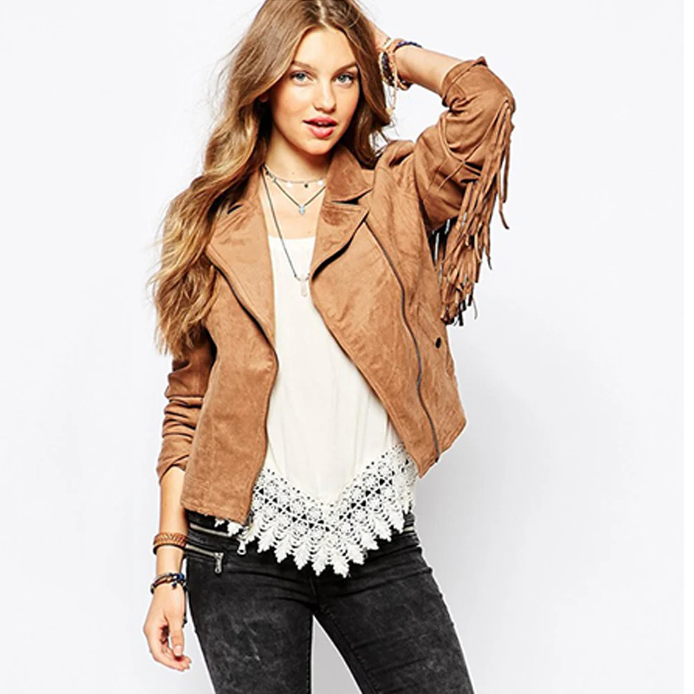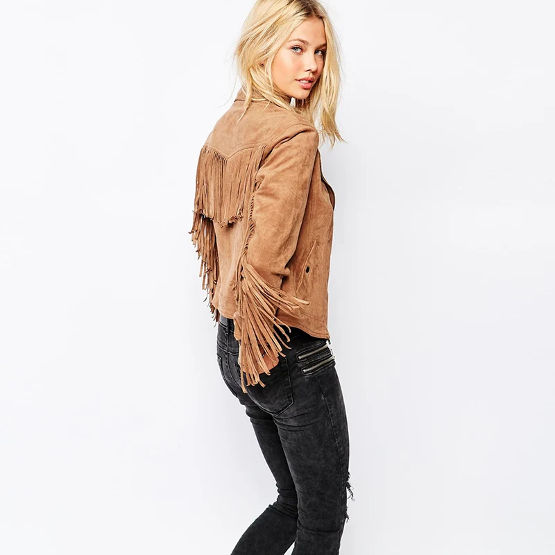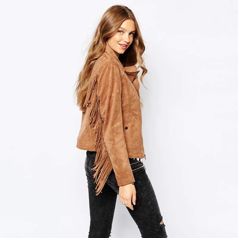 Popular 2019 frauen heißer verkauf mode grund jacken taste taschen quaste wildleder bomber jacken NEUE wint
