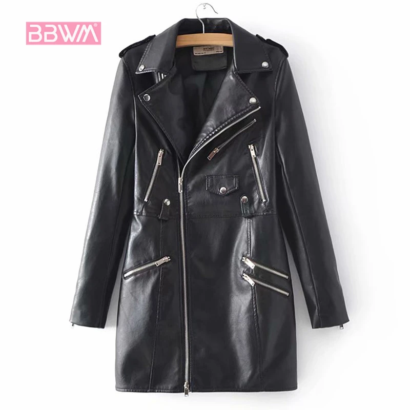Low Price Schlank schlank kragen langarm 2018 winter neue weibliche PU lange leder jacke mode kampf erhalten