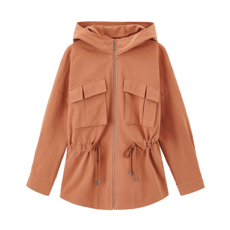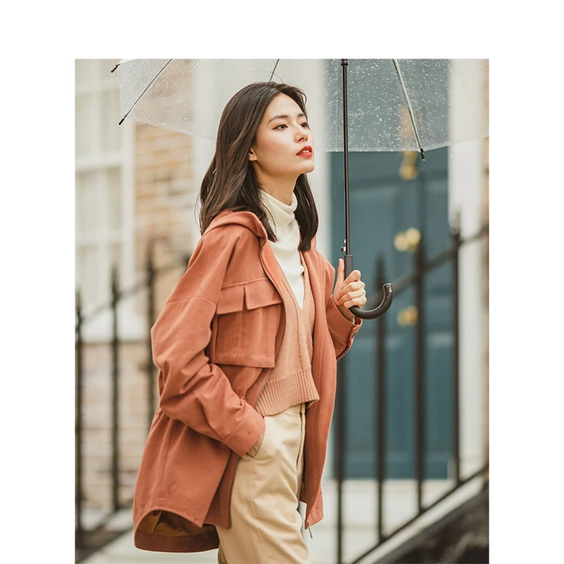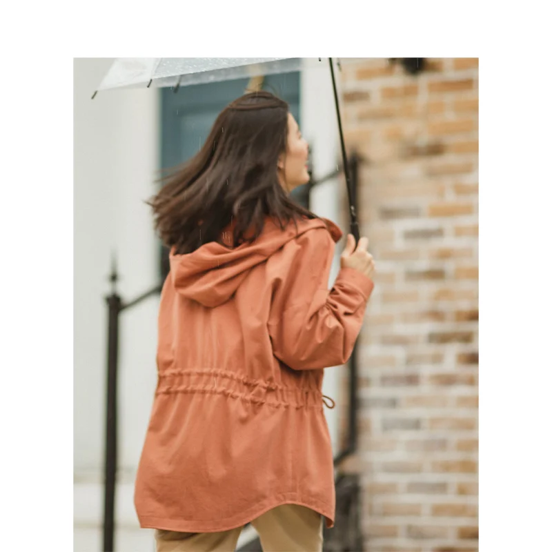 INMAN Spring Autumn Casual Hooded Literary Deep Khaki Drop-shoulder Fashion Women Coat :Click Here