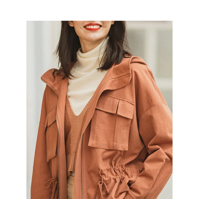 INMAN Spring Autumn Solid Cotton Hooded Turn Down Collar Pocket Fashion Women Coat :Click Here