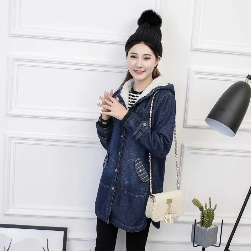 Goods OLGITUM Neue 2018 Herbst und Winter Frauen Korean Dicken Denim Mantel große größe Lange Samt Baumwo