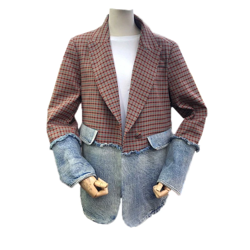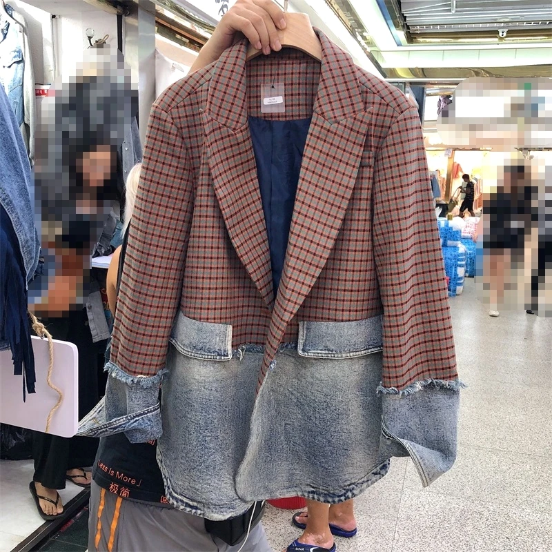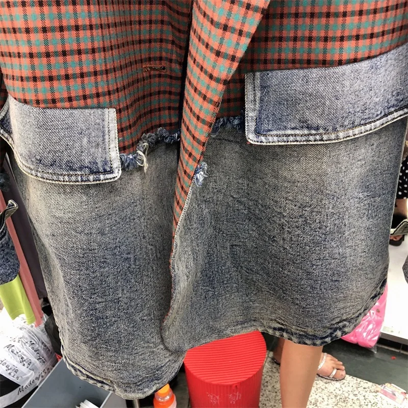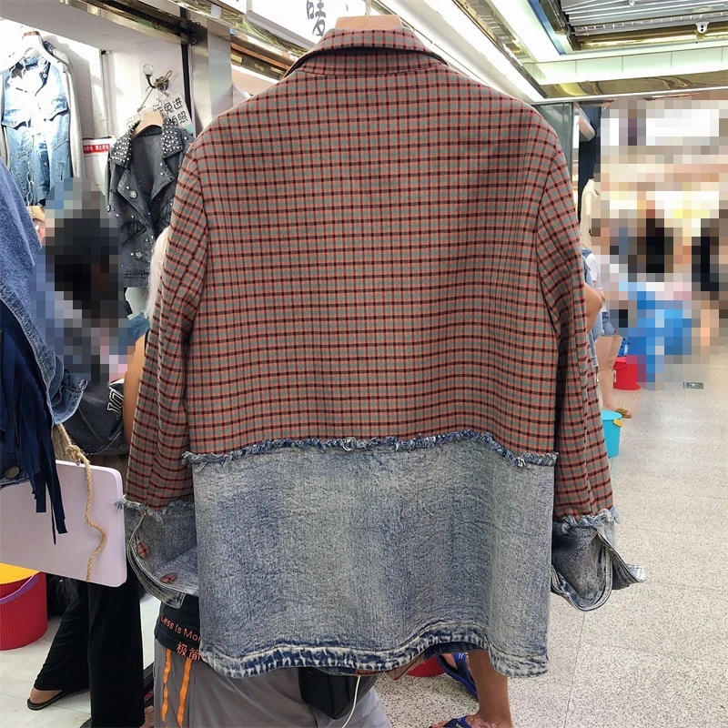 Sale SuperAen 2019 Herbst Neue Koreanische Stil Frauen Anzug Jacke Plaid Nähte Denim Jacken Weibliche Mo