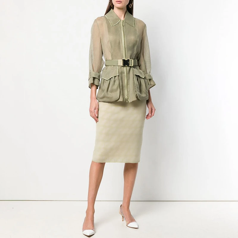TWOTWINSTYLE Hollow Out Solid Jacket For Women Lapel Collar Long Sleeve Zipper With Sashes Coat Female Fashion 2019 Summer :Click Here