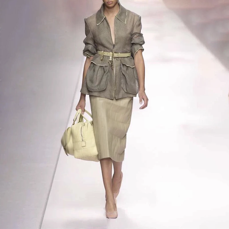 TWOTWINSTYLE Elegant Plaid Jacket For Women Lapel Half Sleeve Button With Sashes Big Size Coat Female Fashion Summer 2019 New :Click Here