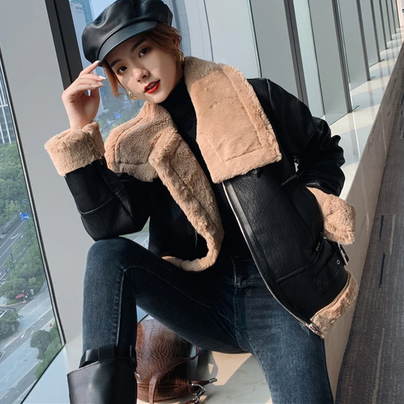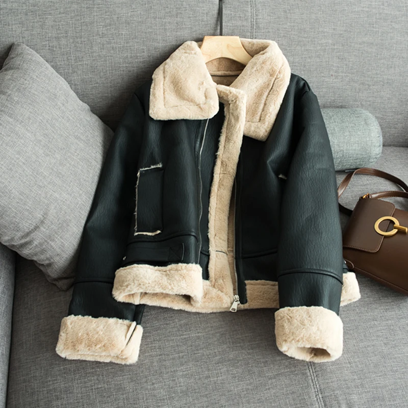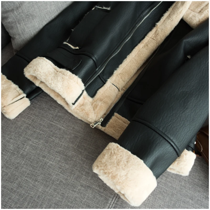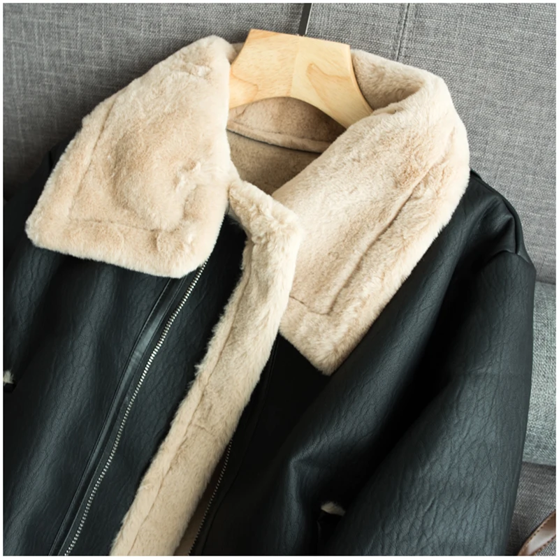 Trend Winter Motorcyle Grund Jacken Plüsch Oberbekleidung Warme Mantel Streetwear Punk PU Jacke Faux Pelz