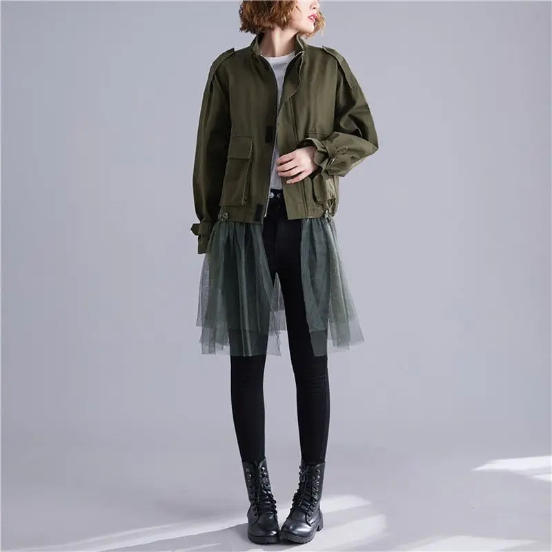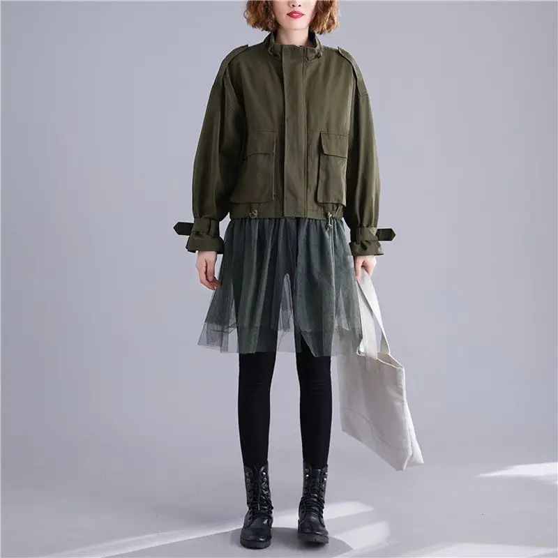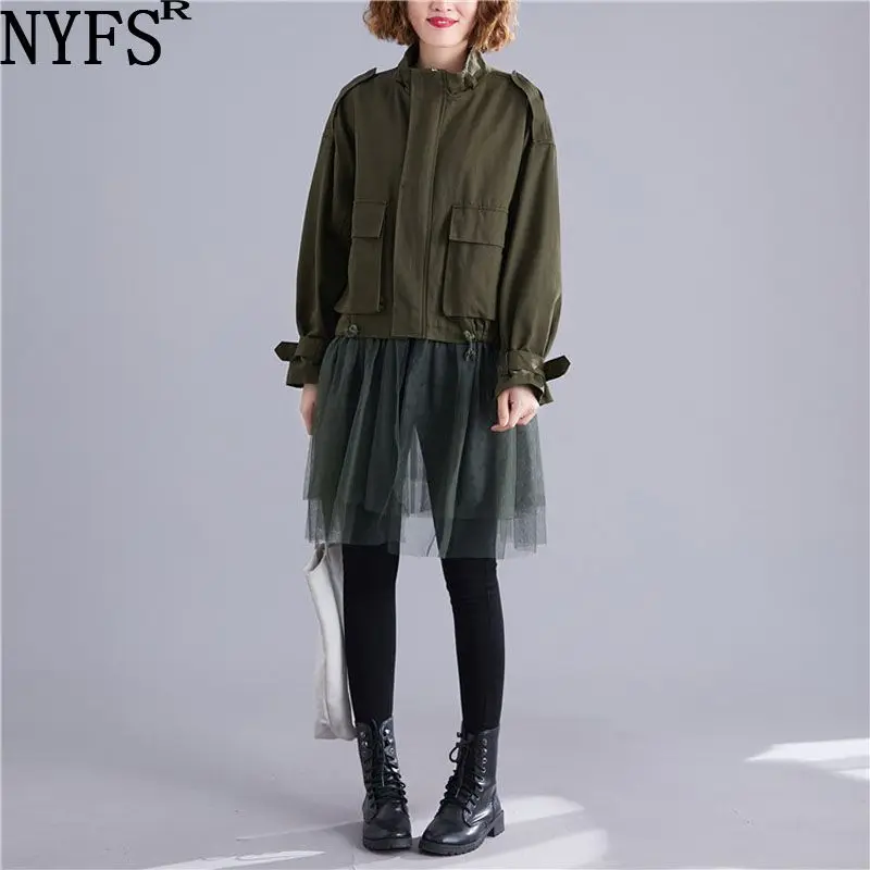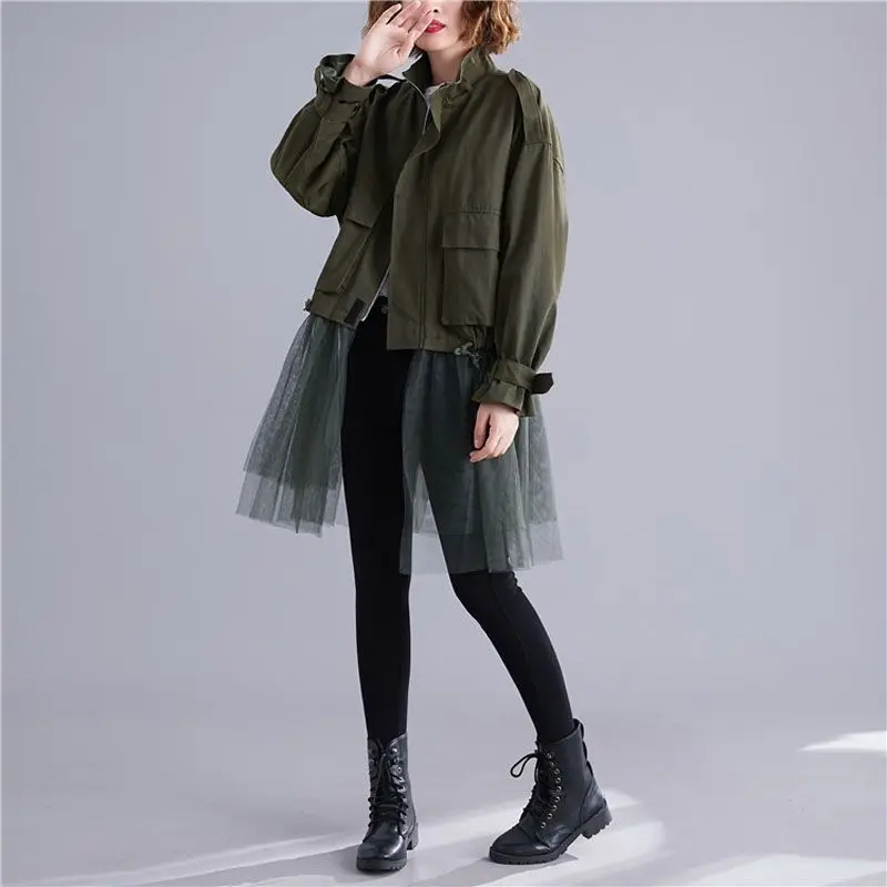 Post a Comment for "In Stock NYFS 2019 Neue Herbst frauen Feste mantel Lose Mode Mesh nähte jacke "