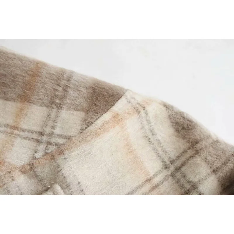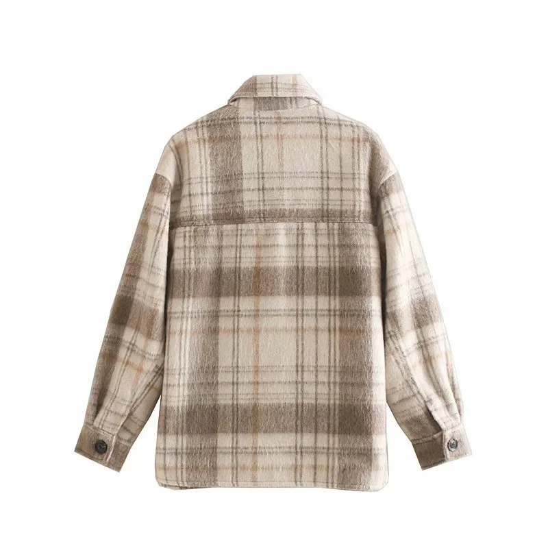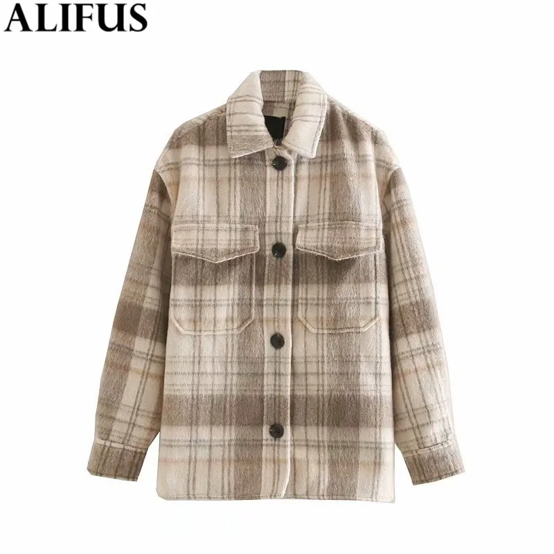 New Arrival Mode Za Frauen Casual 2019 Herbst Vintage Plaid Strickjacke Mantel Lange Hülse Drehen-unten Kragen