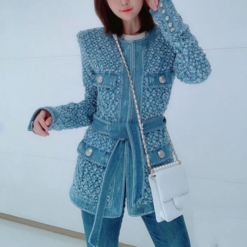 Post a Comment for "Sale TWOTWINSTYLE Streetwear Aushöhlen Denim frauen Jacken O Hals Langarm Tasche Spitze Up Jacke Weiblic "