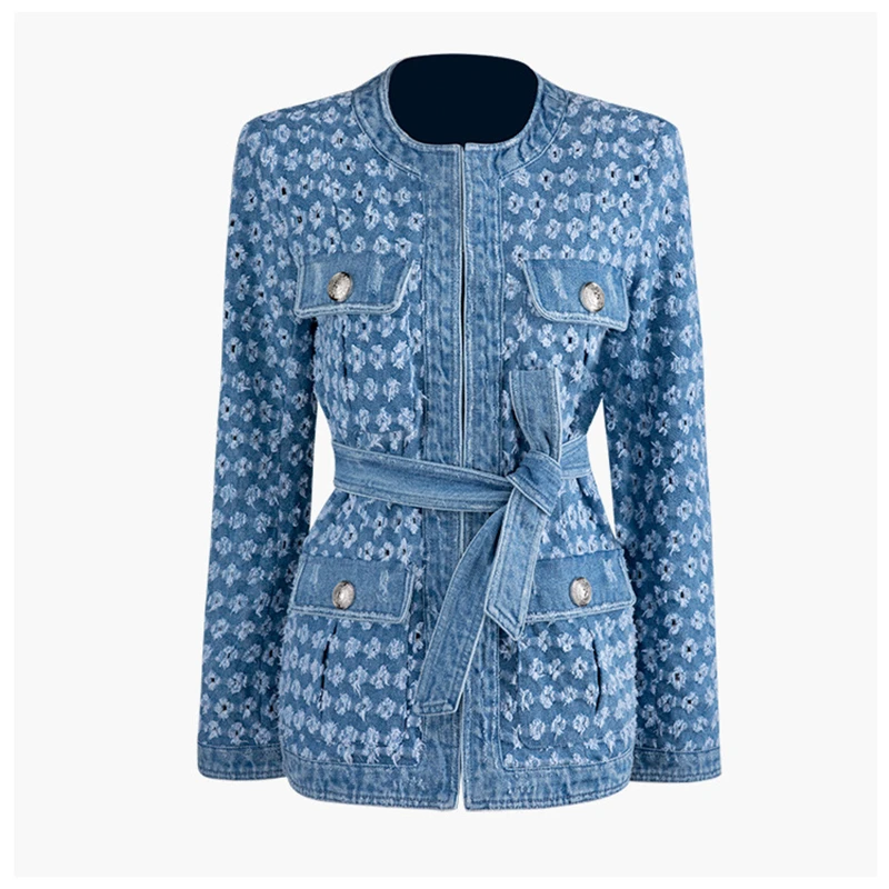 Popular Product TWOTWINSTYLE Streetwear Aushöhlen Denim frauen Jacken O Hals Langarm Tasche Spitze Up Jacke Weiblic