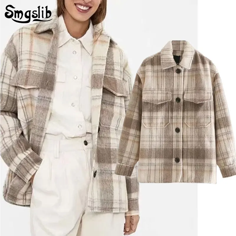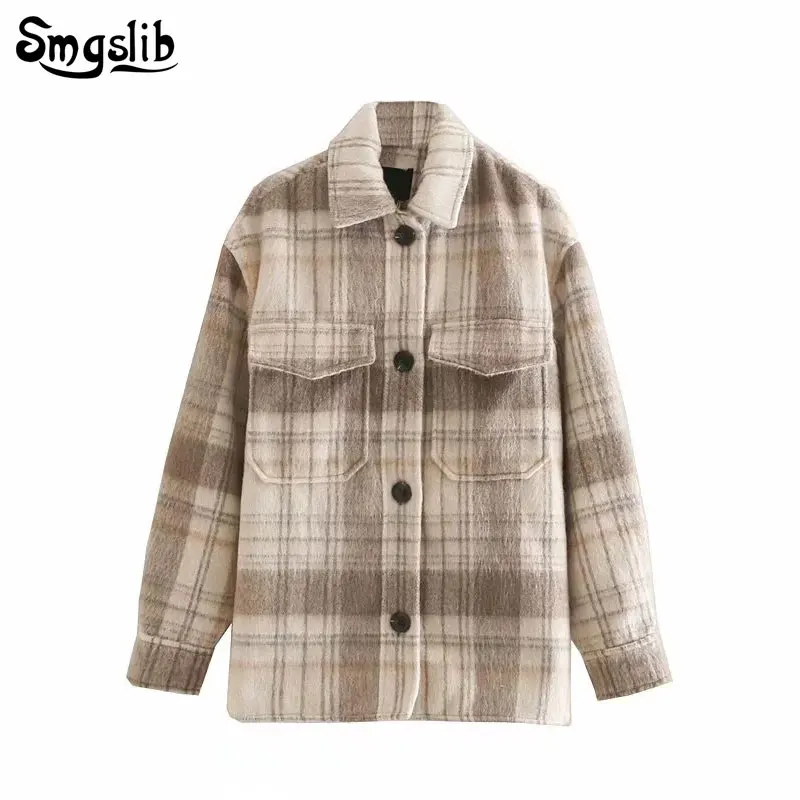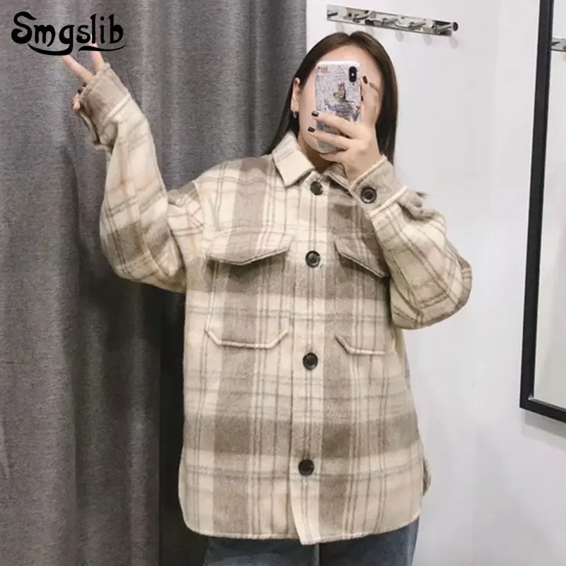 Collection 2019 neue frauen jacken mode damen woolen colthes jacke frauen england vintage plaid oversize boyfi