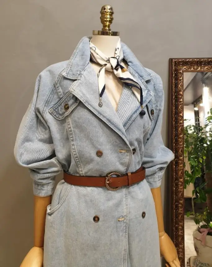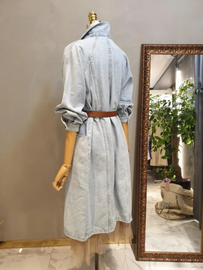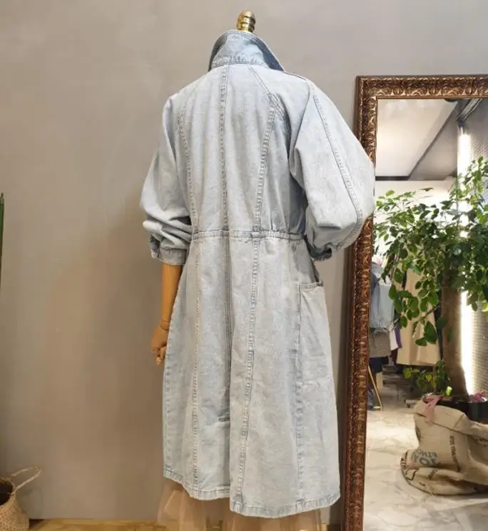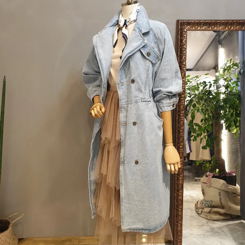 Collection Neue Herbst Denim Mäntel Frauen Langarm Zweireiher Mitte Langen Jeans Jacke Mantel Weibliche Dünne