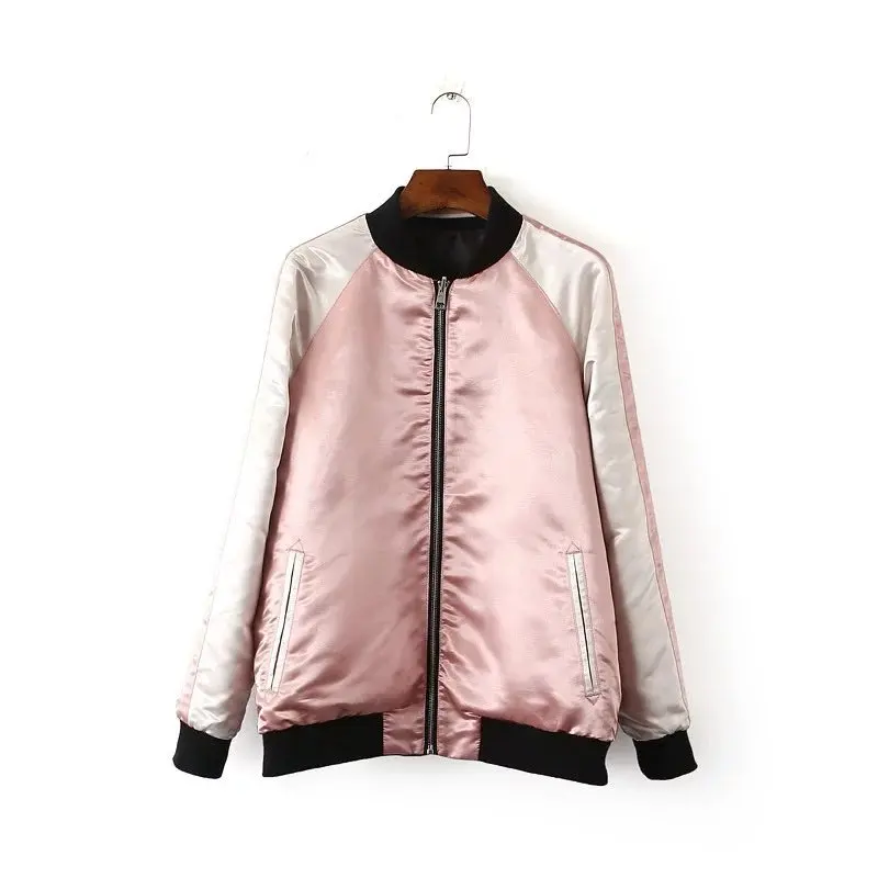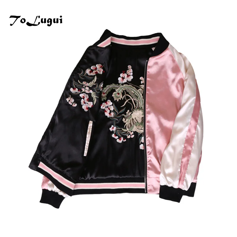 Best Price Floral Stickerei frauen jacke Herbst winter 2018 Harajuku Pilot Jacke Auf Beiden Seiten Casual Base