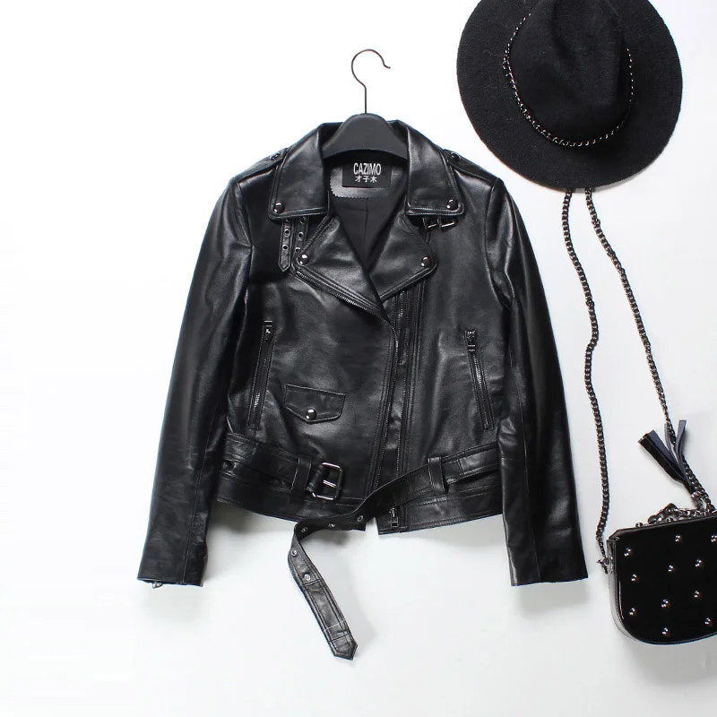2019 Autumn Genuine Leather Jacket for Women Pink Black Zipper Moto Sheepskin Vintage Basic Jacket Women Winter Coat Streetwear :Click Here