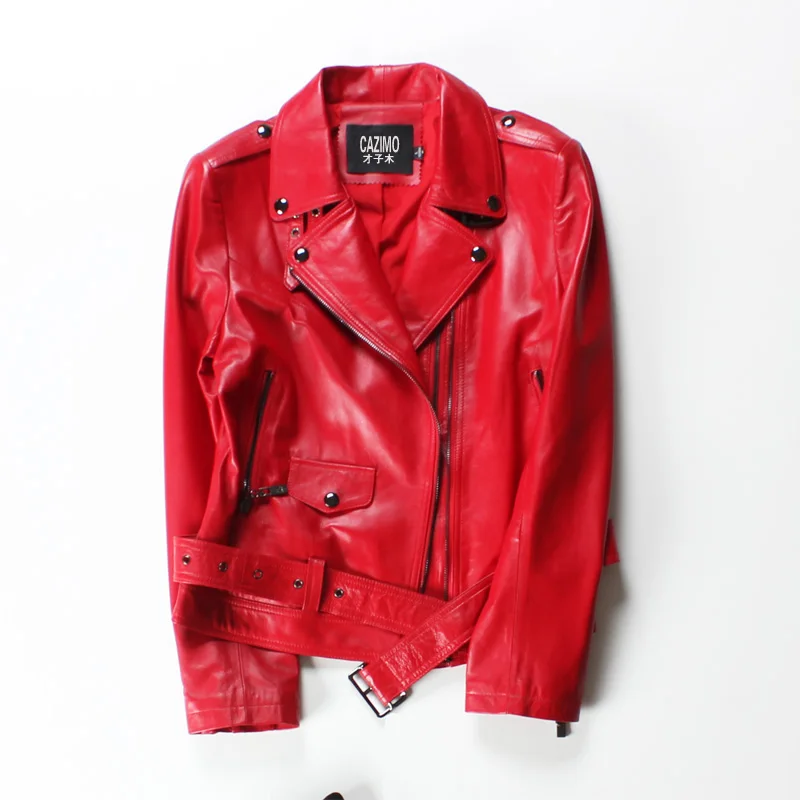 Autumn Genuine Leather Jacket Women Sheepskin Coat Plus Size Black Pink Red Short Ladies Coat Cropped Punk Female Bomber Jacket :Click Here
