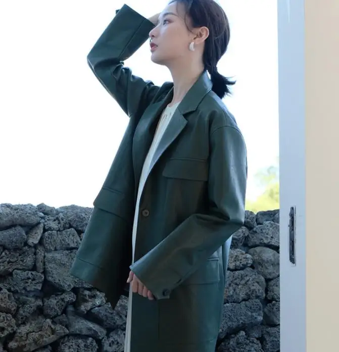 High Waist Loose Woman Leather Jacket Pocket Long 2019 Autumn Vintage Fur Leather Clothings :Click Here