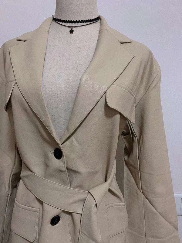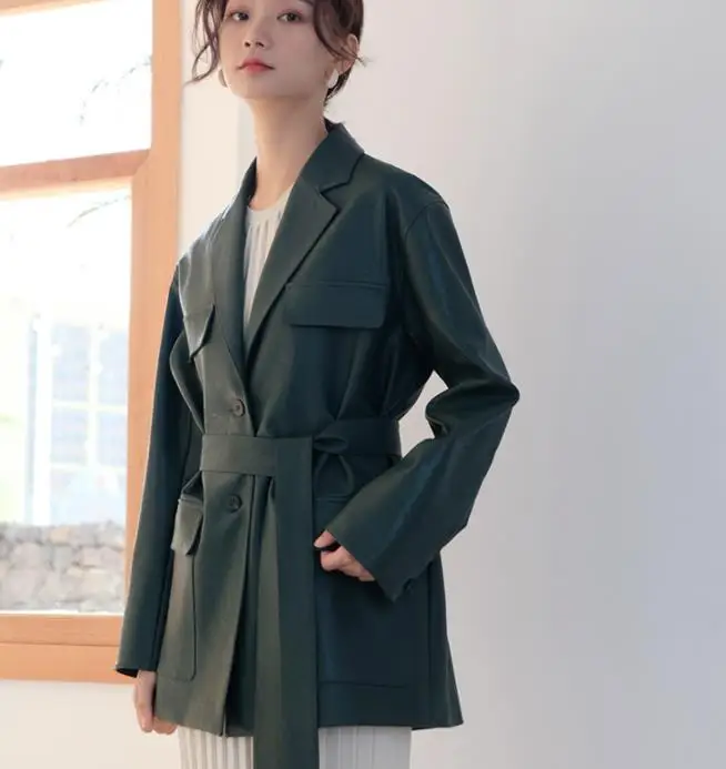 Trend Product Frühling Neue Leder Kleidung Lose Mantel Faul Stil Gürtel 2019 Mode Frauen Leder Mantel