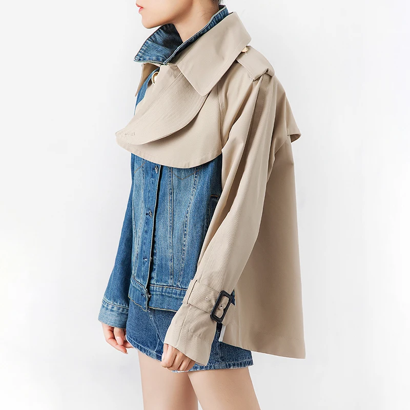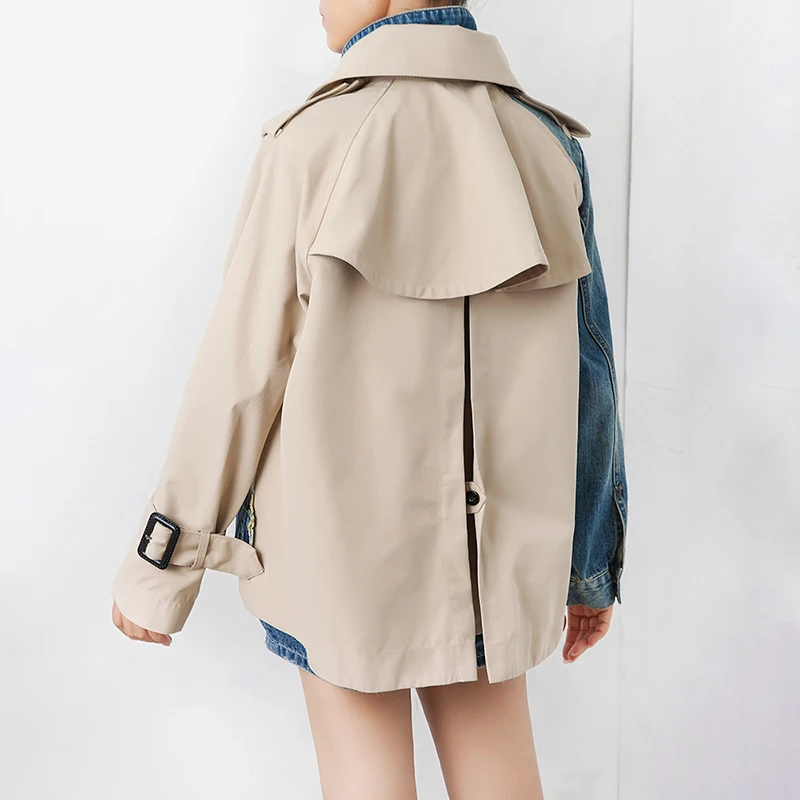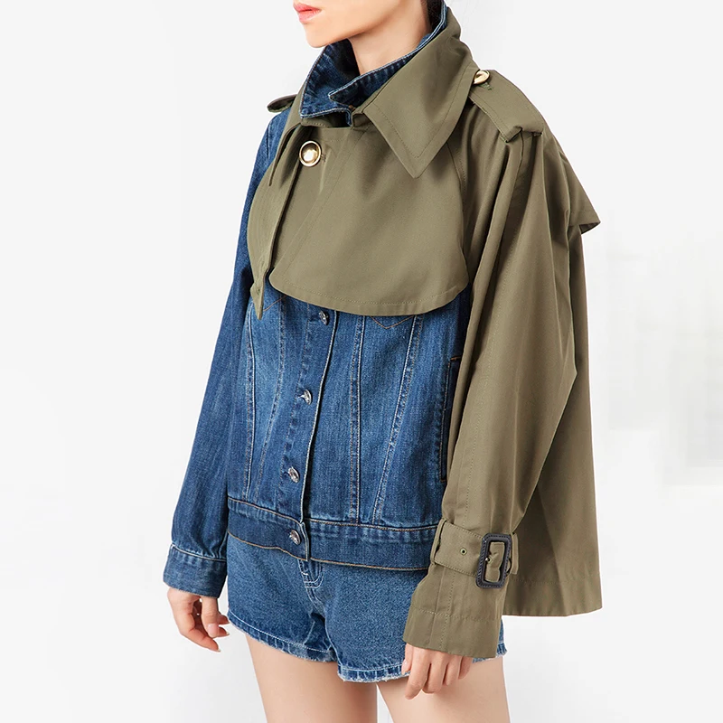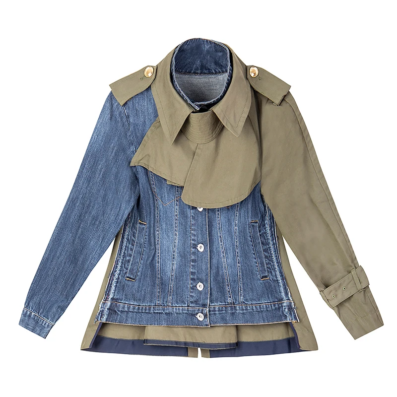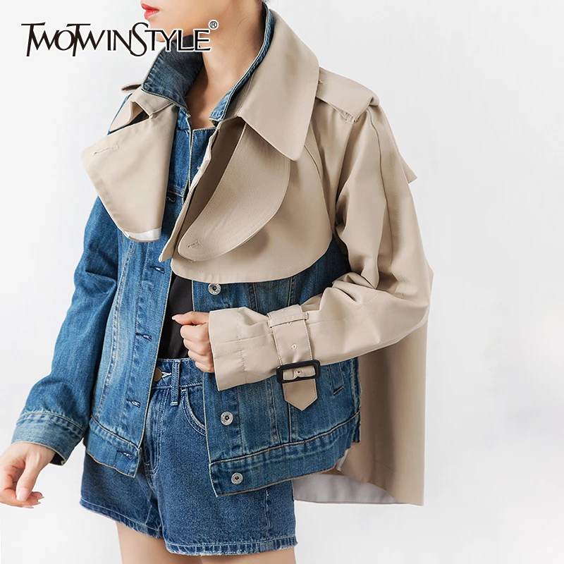 Popular Product TWOTWINSTYLE Denim Patchwork Hit Farbe Frauen Jacke Revers Kragen Langarm Asymmetrische Herbst Weib