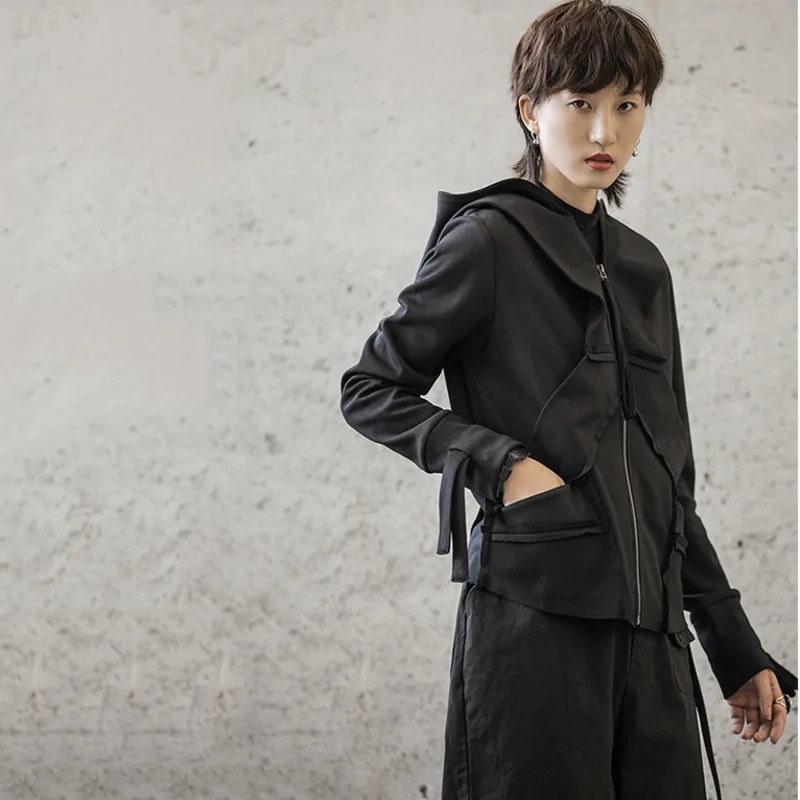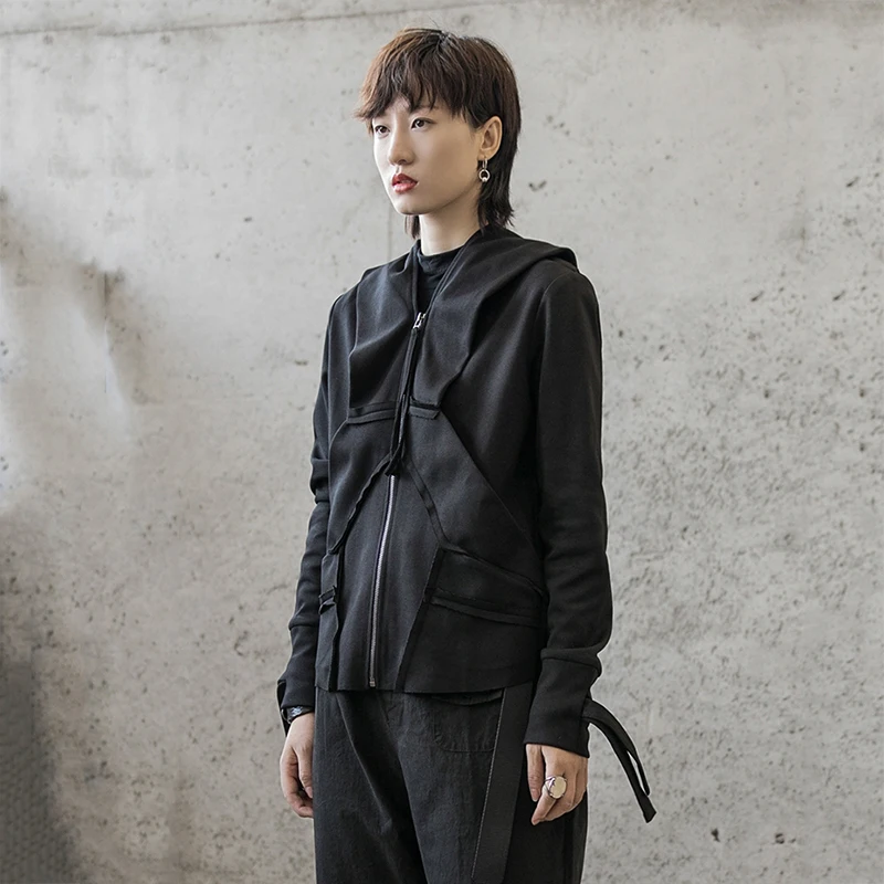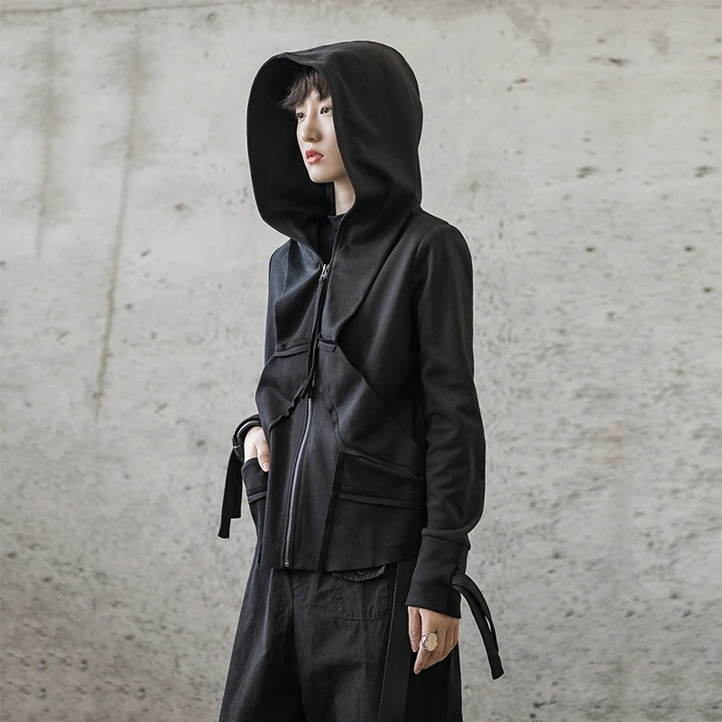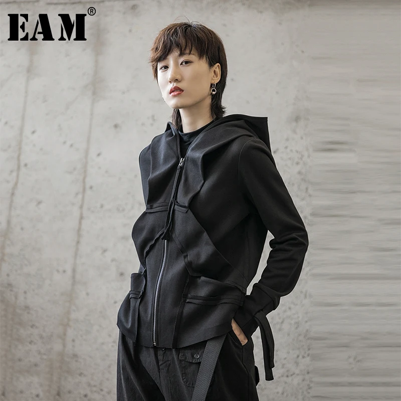 [EAM] 2020 New Spring Stand Collar Long Sleeve Black Zipper Split Joint Irregular Jacket Women Coat Fashion Tide JI102 :Click Here