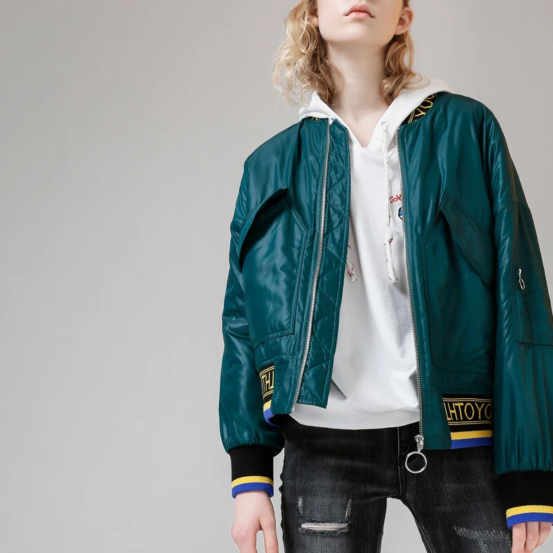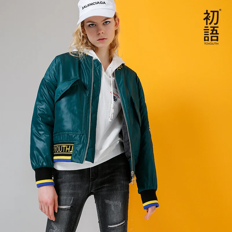 Toyouth Jackets 2019 Autumn Women Fashion Stand Collar Contrast Color Printed Letters Patchwork Loose Jacket :Click Here