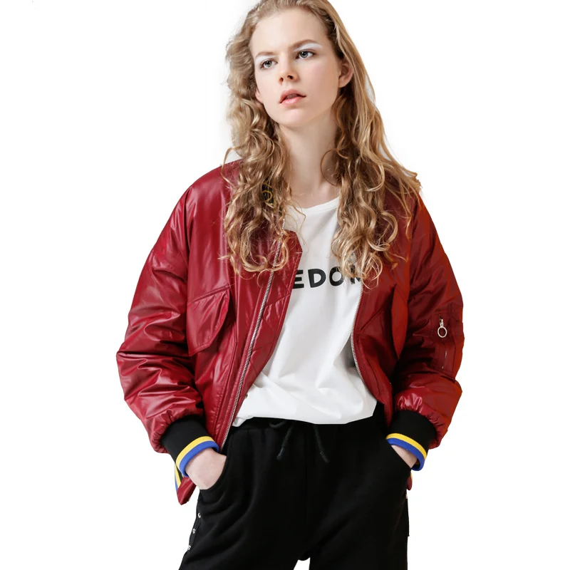 Toyouth Coolest Autumn Bomber Jacket Fashion Solid Women Pink Black Baseball Jackets Double Pockets Short Coat Outerwear :Click Here