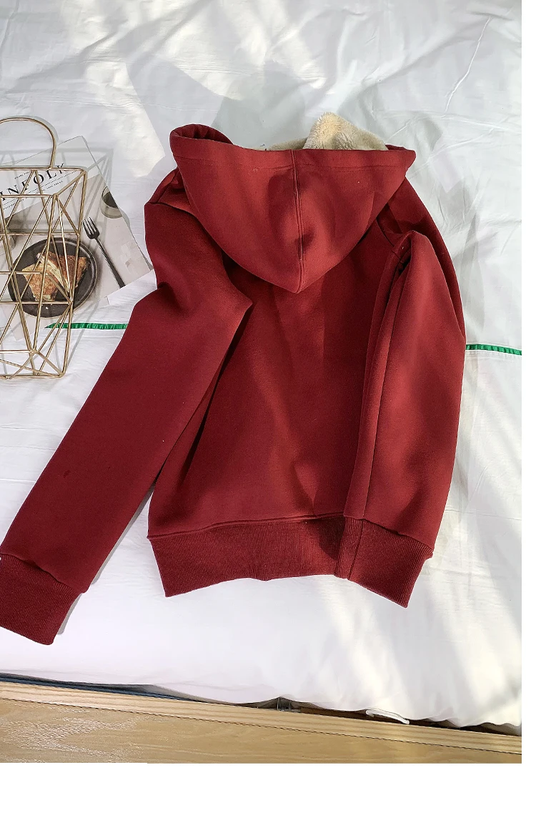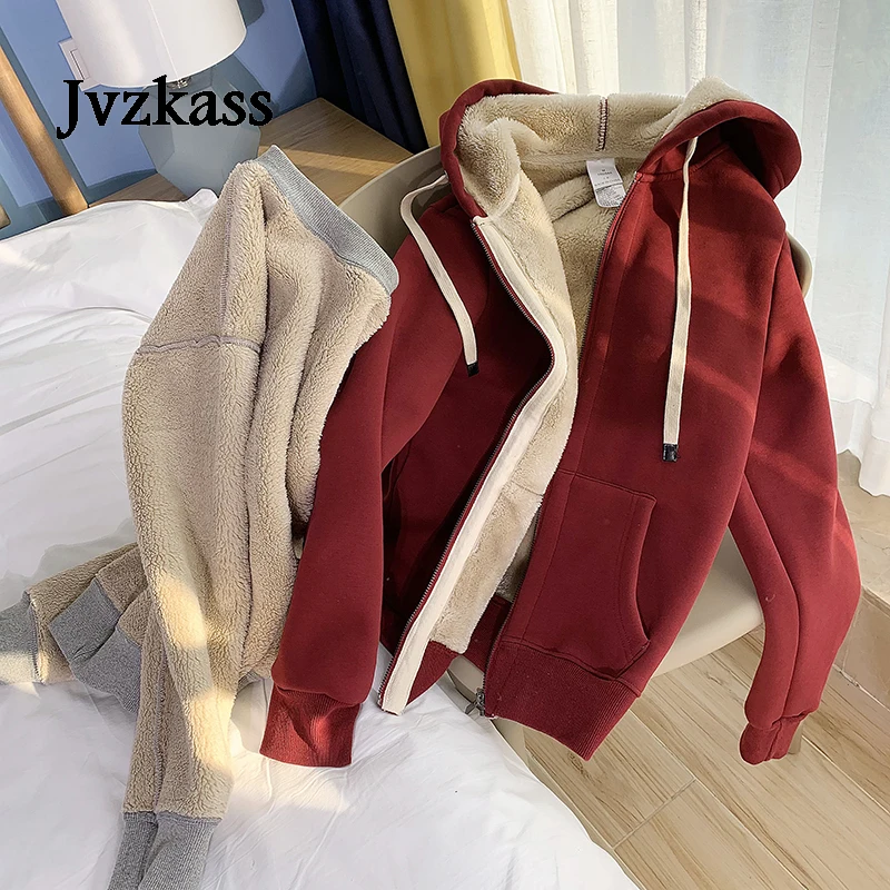 Jvzkass 2019 new Winter plus velvet female students loose hooded zipper short paragraph lamb cashmere warm thick coat Z280 :Click Here