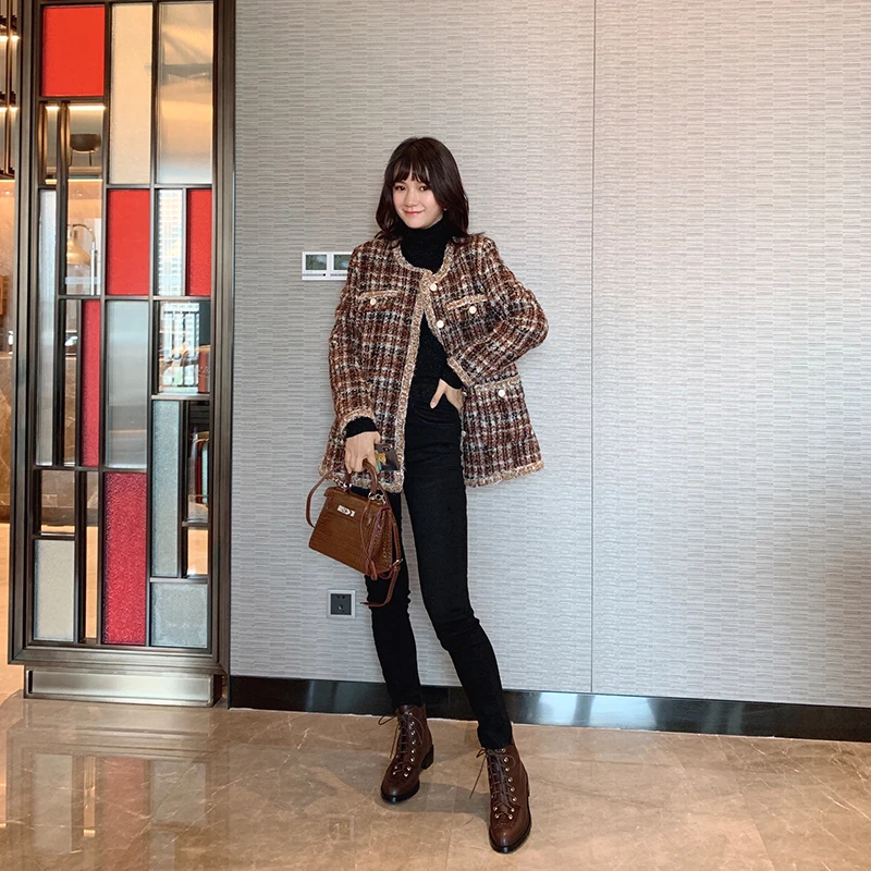 MISHOW 2019 Autumn Winter Thick Plaid Knit Coat Women Temperamental Single-breasted Long Sleeves Coat MX19C5249 :Click Here