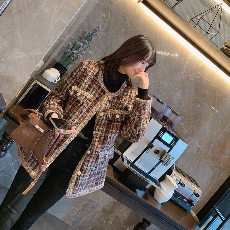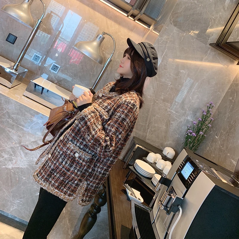 Latest Product Mishow 2019 Winter Vintage Plaid Dame Jacke Frauen Mode einreiher Lange Hülse Lose Kaffee Mantel MX