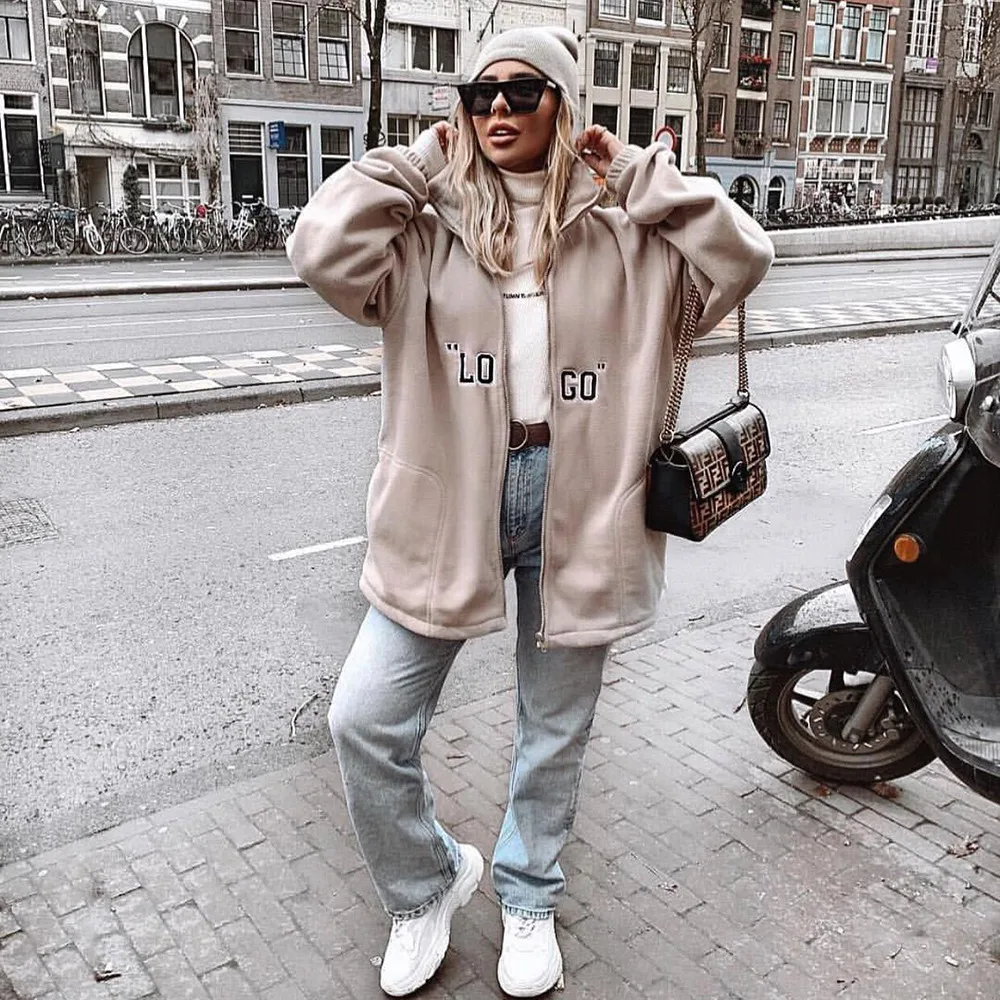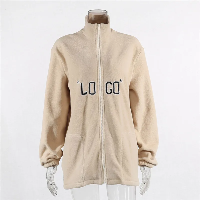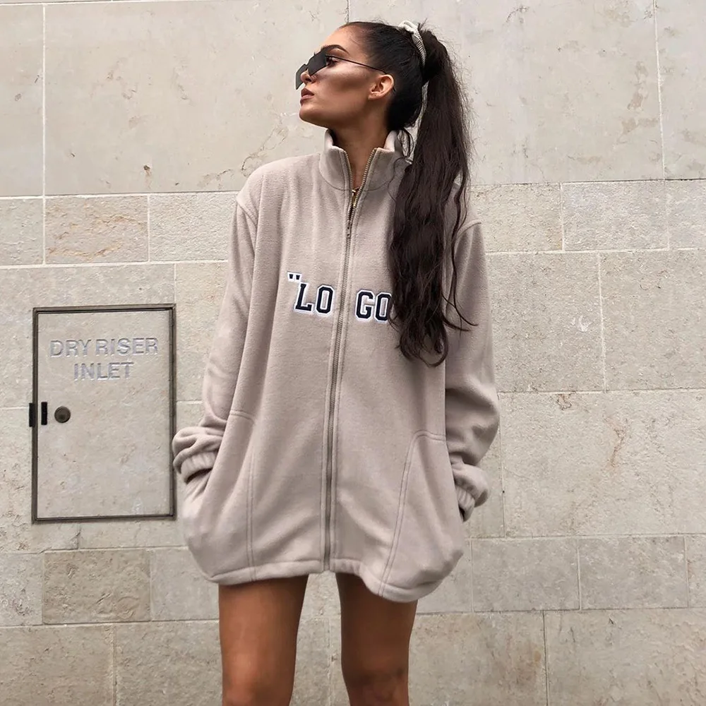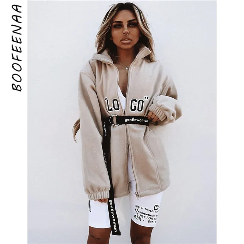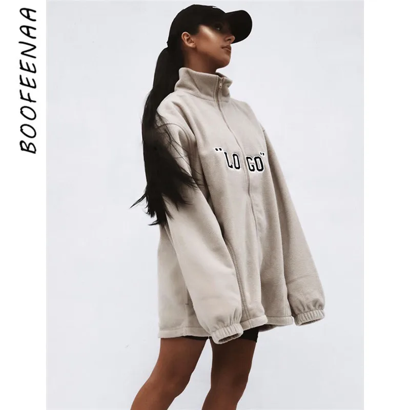 Post a Comment for "The Latest BOOFEENAA Logo Brief Zip Fleece Outwear Frauen Mode Jacke Mäntel Streetwear Oversize Windjacke Herb "