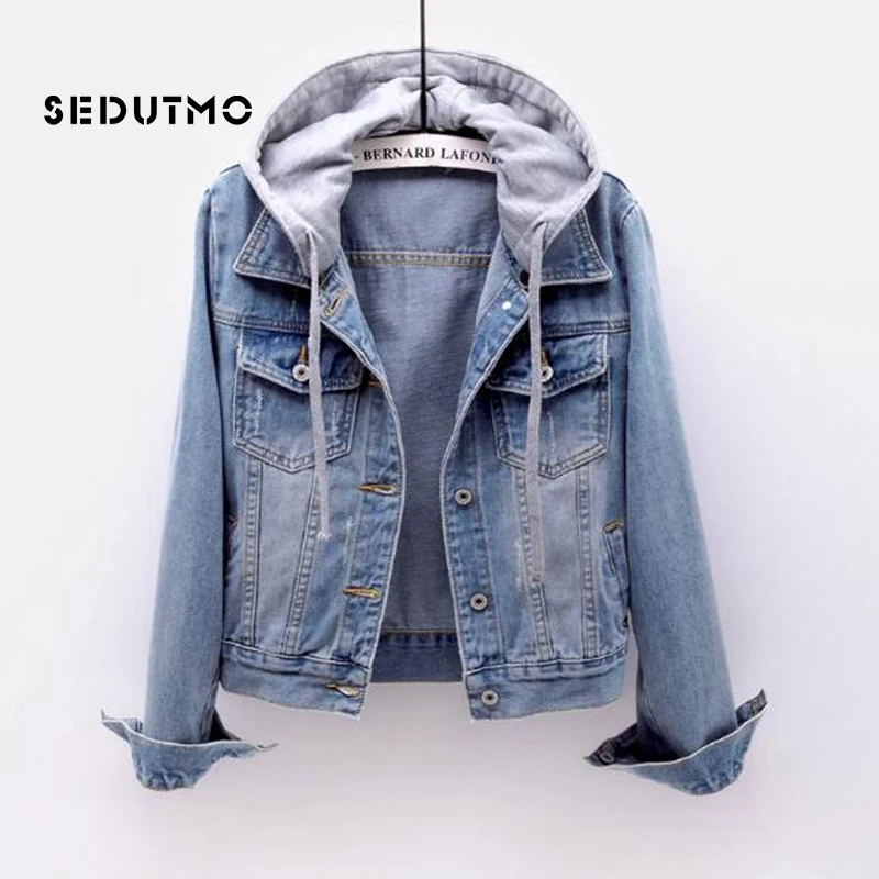 New Product SEDUTMO Plus Größe 5XL Denim Jacke Frauen Hoodie Freund Jean Mantel Streetwear Vintage Herbst Haraj