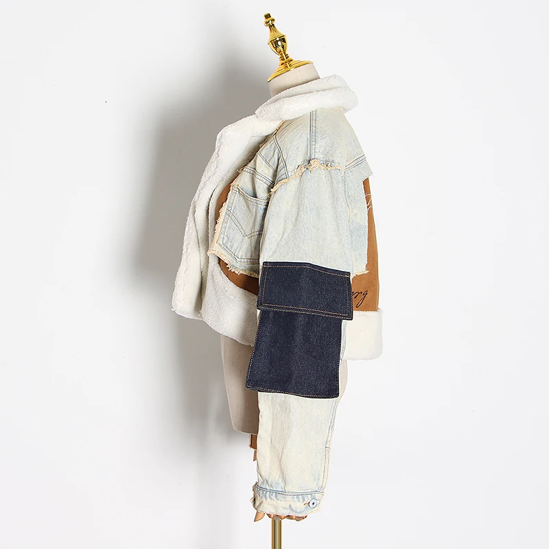 TWOTWINSTYLE Patchwork Hit Color Denim Jacket Women Lapel Collar Long Sleeve Pocket Irregular Coats Female Fashion 2020 Clothing :Click Here